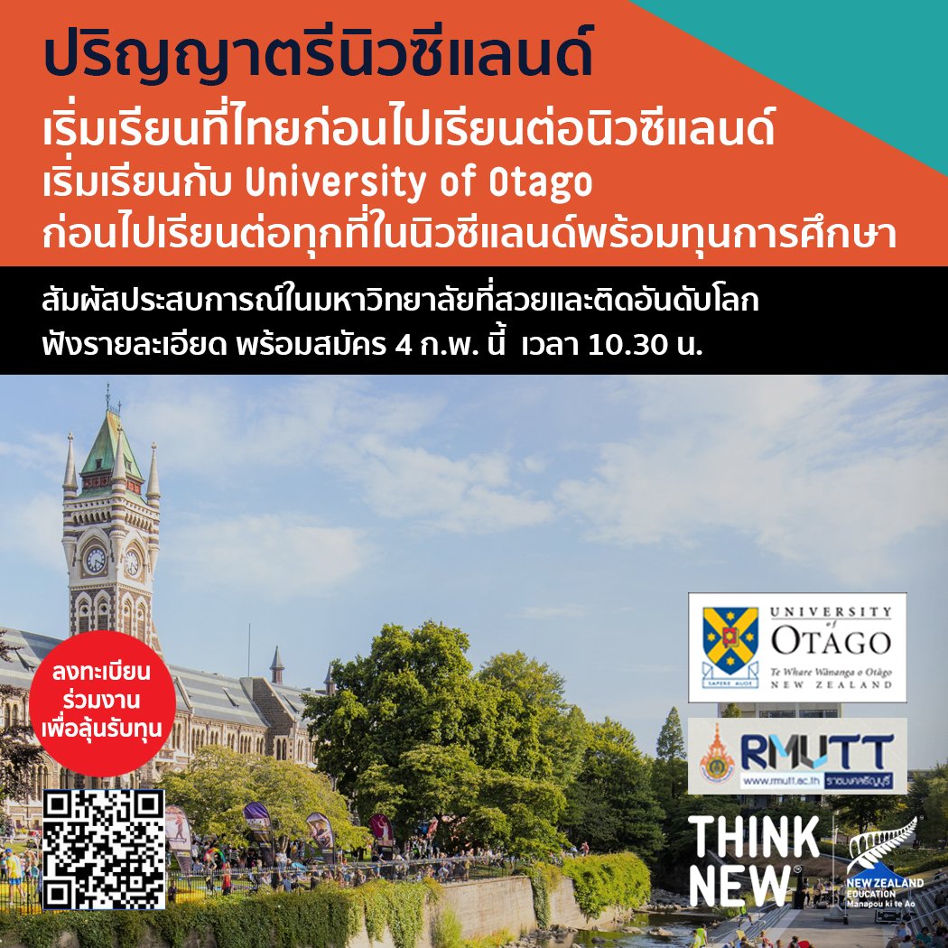 เรียนกับ University of Otago มหาวิทยาลัย Top 1% ของโลก ร่วมงานสรุปออนไลน์ปริญญาตรีไฮบริดนิวซีแลนด์ความร่วมมือระหว่าง University of Otago และ RMUTT