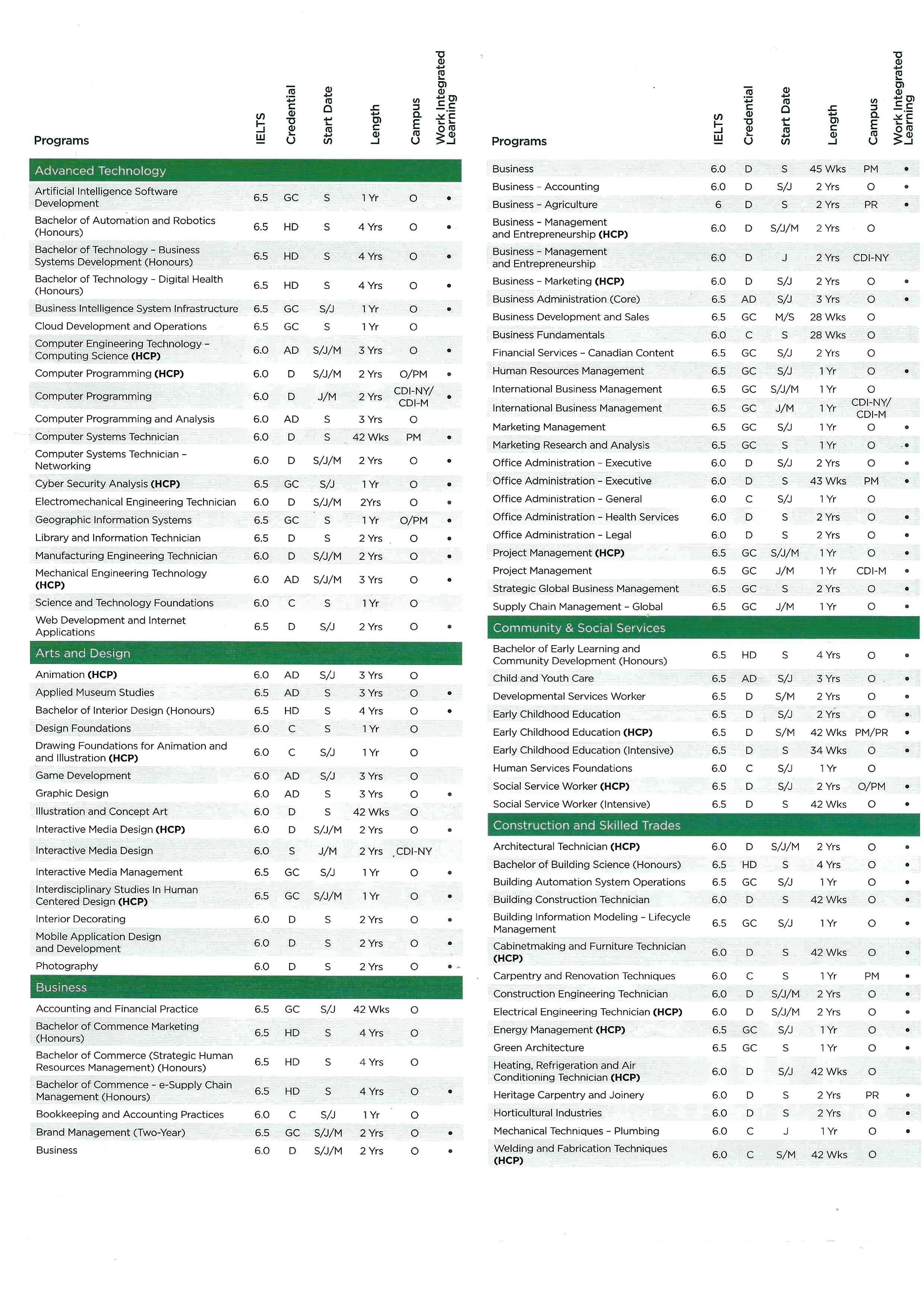 Algonquin College มีรูปแบบการเรียนยืดหยุ่นโดยสามารถเลือกเรียนตาม level ต่างๆได้ดังนี้