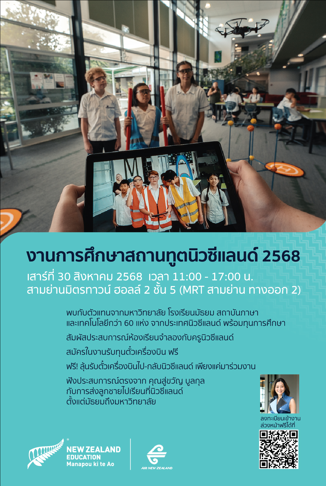 ลงทะเบียนฟรี คลิกเลยก่อนเต็ม! https://www.studywithnewzealand.govt.nz/th/education-fair-thailand